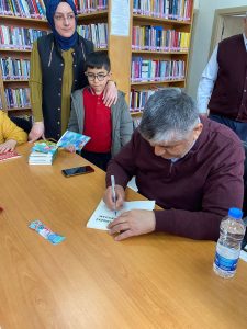 Yazar Aytekin Kütüphane Müdürü Hüseyin Özdemir, Cumhuriyet İlkokulu Müdürü Erdal Şahin ve sınıf öğretmeni Tülin Sakçalı’ya teşekkür etti.